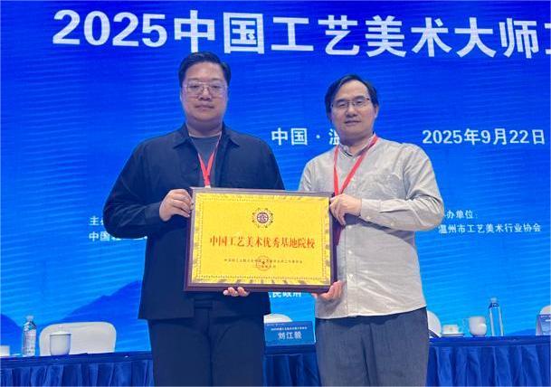 在此次会议上,中国轻工业联合会首次颁发“中国工艺美术大师终身成就荣誉”,湖北美术学院手工艺术学院客座教授、中国工艺美术大师常世琪先生荣膺此称号。常世琪先生长期致力于传统雕刻技艺的传承与革新,其作品融合荆楚地域文化符号,成为当代工美教育的典范。作为会议重要环节,“2025百名大师进校园成果展”在温州肯恩大学展出,湖北美术学院师生创作的3件作品参展,涵盖陶瓷、剪纸工艺等门类。