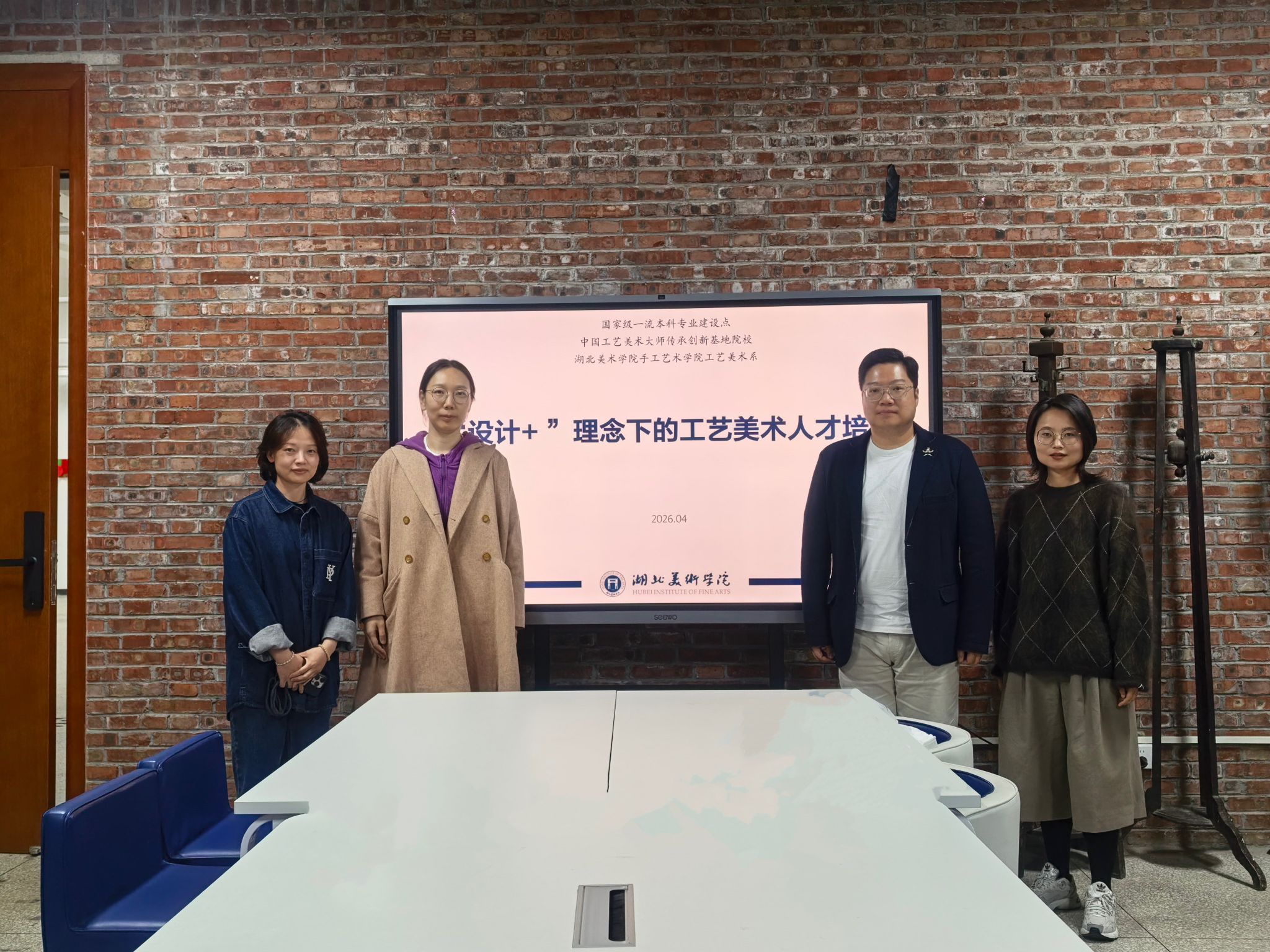 4月23日下午,郑州美术学院工艺美术教研室主任张璐、副主任袁征一行到访手工艺术学院考察交流。我院工艺美术系主任叶加贝、手工艺设计教研室主任常学红及教师陈熙共同参加座谈。