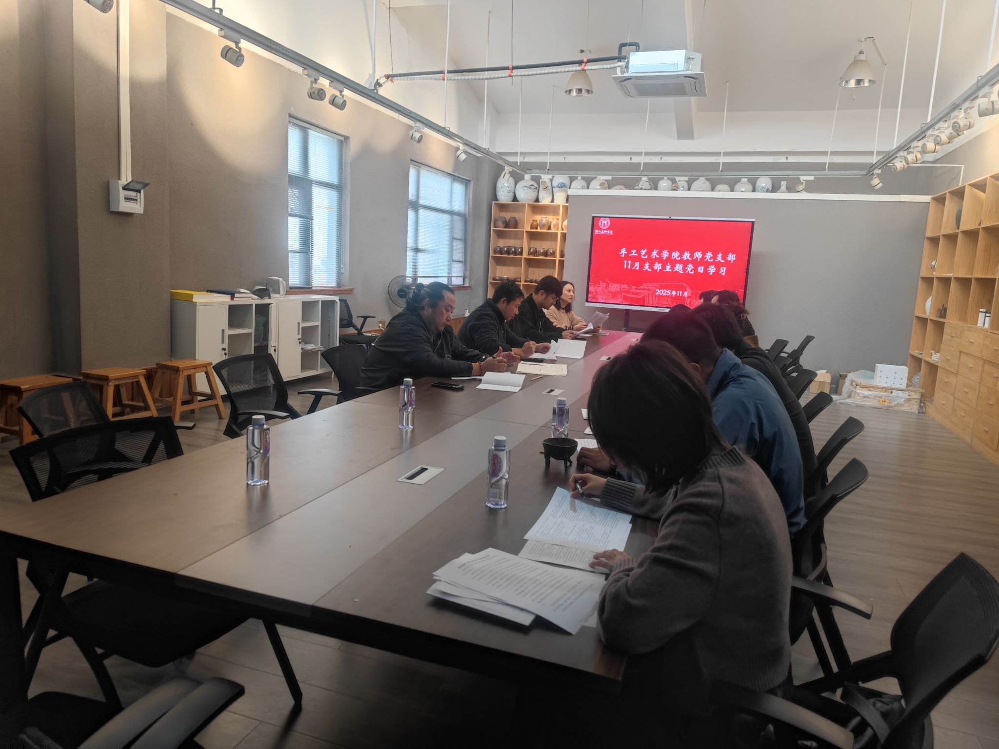 2025年11月12日,手工艺术学院教师党支部在A11教学楼四楼会议室召开11月支部主题党日活动。会议由支部书记谌威主持,手工艺术学院教师党支部全体成员参加会议。